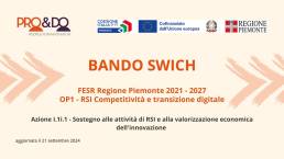 Il 27 luglio è stato pubblicato il Bando SWIch – Sostegno alle attività di RSI e alla valorizzazione economica dell’innovazione nell’ambito del FESR Piemonte 21-27.