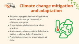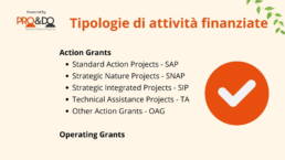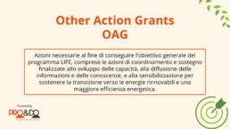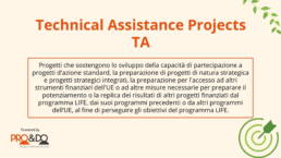 Il programma LIFE finanzia progetti innovativi che promuovono la protezione dell’ambiente e il contrasto ai cambiamenti climatici. I finanziamenti sono destinati a progetti su larga scala, che includono iniziative di conservazione della natura, azioni per la riduzione delle emissioni di gas serra, e miglioramenti nella gestione delle risorse idriche e dei rifiuti.